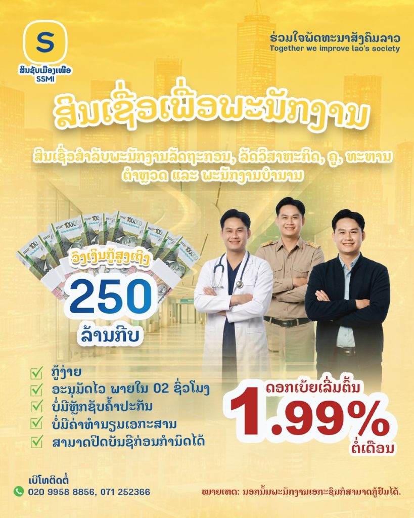 ຮັບໂຊກປີໃໝ່ ໄດ້ເງິນກ້ອນໄວ ໝັ້ນໃຈກັບ ສິນຊັບເມືອງເໜືອ ສິນເຊື່ອລົດແລກເງິນ ບຸນປີໃໝ່ລາວ ພສ 2569 ນີ້, ຢາກໄດ້ເງິນກ້ອນ ໄວ້ສ້າງໂອກາດ ຮັບໂຊກປີໃໝ່ ໃຫ້ ສກຈຮ ສິນຊັບເມືອງເໜືອ ຊ່ວຍທ່ານ ດ້ວຍ “ສິນເຊື່ອລົດແລກເງິນ” ທີ່ຈະຊ່ວຍໃຫ້ທ່ານຍິ້ມຮັບໂຊກດີ ຕະຫຼອດປີ ກູ້ງ່າຍ, ອະນຸມັດໄວ ວົງເງິນກູ້ ສູງສຸດ 1 ຕື້ກີບ ເອກະສານບໍ່ຫຍຸ້ງຍາກ ໄລຍະເວລາ ດົນເຖິງ 5 ປີ ດອກເບ້ຍເລີ່ມຕົ້ນພຽງ 2.49% ຕໍ່ເດືອນ ເທົ່ານັ້ນບຸນປີໃໝ່ລາວ ພສ 2569 ໃຫ້ພວກເຮົາເປັນຜູ້ຊ່ວຍທີ່ຮູ້ໃຈ ສໍາລັບທ່ານ ——————————–ສິນຊັບເມືອງເໜືອ ຮ່ວມໃຈພັດທະນາສັງຄົມລາວSSMI ໃສ່ໃຈການບໍລິການ ——————————–ສະຖາບັນການເງິນຈຸລະພາກ ທີ່ຮັບເງິນຝາກ ສິນຊັບເມືອງເໜືອ ຈຳກັດສອບຖາມຂໍ້ມູນເພີ່ມເຕີມໄດ້ທີ່:Call Center: 020 9958 8856, 071 252 366Website: https://www.ssmilaos.comຕິດຕໍ່ພະນັກງານສິນເຊື່ອ:https://api.whatsapp.com/send?phone=+8562099588856 ຫຼື ກົດລິ້ງດ້ານລຸ່ມ ເພື່ອສະໝັກອອນລາຍ:https://forms.gle/gA4MXZ4D2dd22Toi8ພະນັກງານ ຈະຕິດຕໍ່ຫາທ່ານພາຍໃນ 1-2 ວັນ (ວັນລັດຖະການ)ເປີດບໍລິການວັນຈັນ ເຖິງ ວັນສຸກເວລາ 8:30 – 15:30#ສິນຊັບເມືອງເໜືອ#ຮ່ວມໃຈພັດທະນາສັງຄົມລາວ#ssmilaos#ssmiໃສ່ໃຈທຸກການບໍລິການ#ສິນຊັບເມືອງເໜືອເພື່ອການເປັນຢູ່ທີ່ດີຂຶ້ນ#ທີ່ປຶກສາທາງການເງິນ#ການເງິນມີບັນຫາປຶກສາເຮົາໄດ້#ເງິນກູ້#ບຸນປີໃໝ່ລາວ Post Views: […]